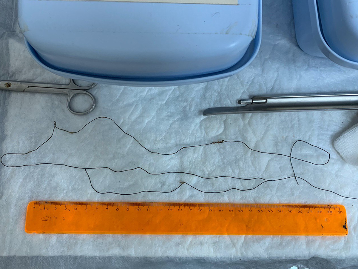 Наш пациент заранее был подготовлен к предстоящей операции, так как вероятность операционного вмешательства была высока. Животное было подготовлено к предстоящему наркозу и направлено на энтеротомию для удаления инородного предмета из кишечника. В ходе операции была извлечена нить размером 110 см (1,1 метр). Кот Смарт после перенесенной операции был оставлен в клинике на стационарном лечении на 3 дня для постоперационного наблюдения и ухода.