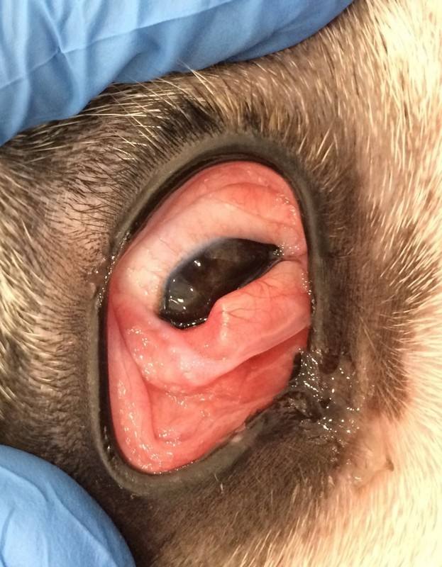 Рис. 1. Залом хряща третьего века у щенка немецкого дога